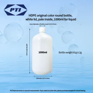 Using high-density polyethylene (HDPE) raw material, it maintains its natural color and has excellent impact resistance and weather resistance. The thickened bottle body design can withstand the weight of materials and harsh transportation environments, ensuring packaging safety.